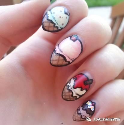 3. 在指甲上绘制吃瓜酱图案,可以使用美甲颜料或者直接用吃瓜酱。